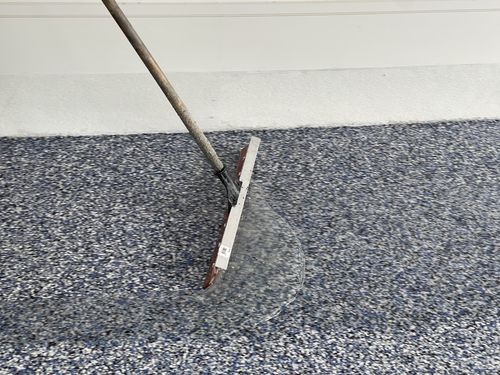 4. Second Layer - Depending on the type of finish requested, we will either broadcast flake, quartz, or another coat of epoxy, or we will lay down a beautiful metallic layer.